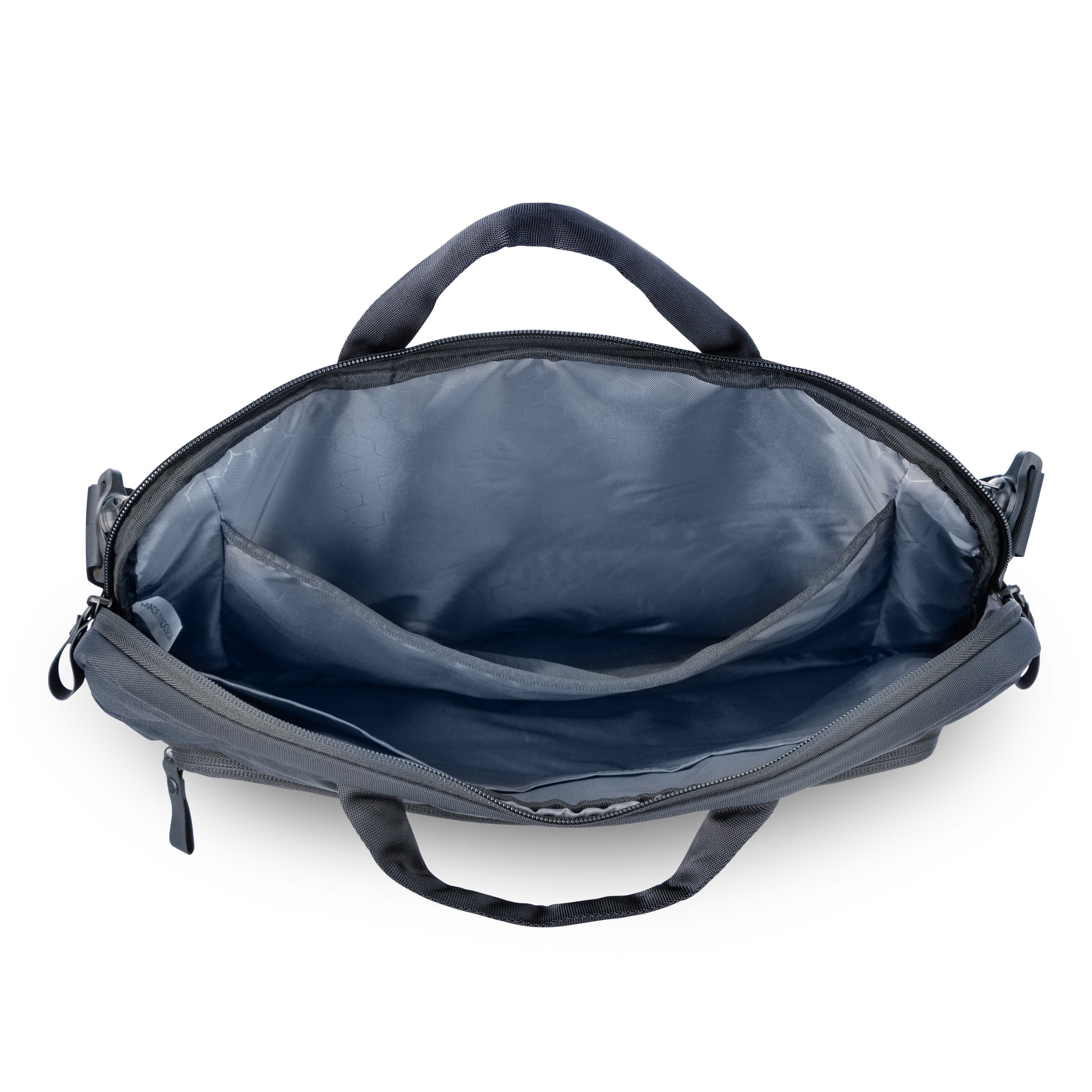 - Zippered front pocket with office